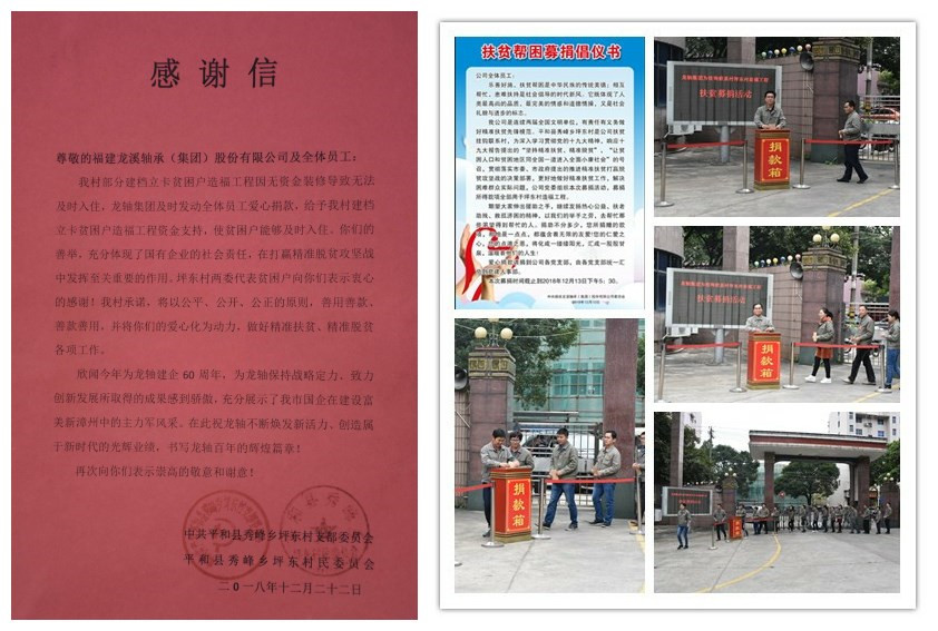 2018年12月中旬,為深入學習貫徹黨的十九大精神,響應十九大報告提出的“堅持精準扶貧、精準脫貧”,“讓貧困人口和貧困地區同全國一道進入全面小康社會”的號召,貫徹落實市委、市政府提出的推進精準扶貧打贏脫貧攻堅戰的決策部署,更好地做好精準扶貧工作,解決困難群眾實際問題,公司黨委為掛鉤聯系村平和縣秀峰鄉坪東村造福工程發起“扶貧募捐活動”。1641名員工積極響應,慷慨解囊,短短幾天時間即籌得41891元扶貧善款,并及時匯給坪東村民委員會。