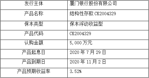 委托理財產品名稱:結構性存款產品CK2004329。