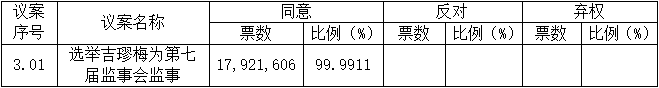 本次股東大會審議的議案三投票采用累積投票制表決,此議案的表決情況僅統(tǒng)計列示表決同意數(shù)。