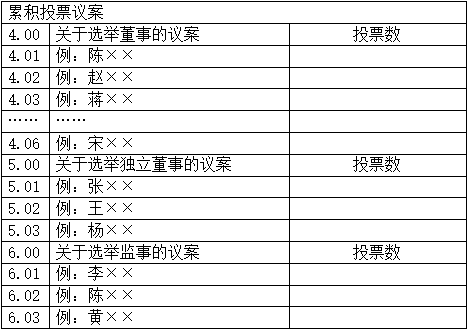 (六)采用累積投票制選舉董事、獨立董事和監事的投票方式,詳見附件2