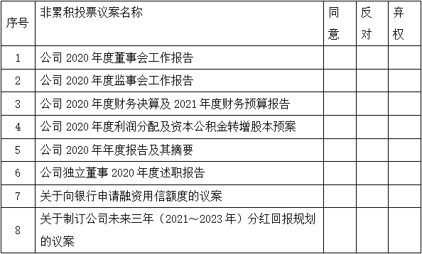 茲委托 先生(女士)代表本單位(或本人)出席2021年4月29日召開的貴公司2020年年度股東大會,并代為行使表決權。