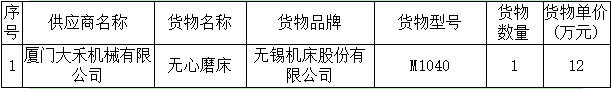 龍軸集團M1040無心磨床采購與安裝中標公告