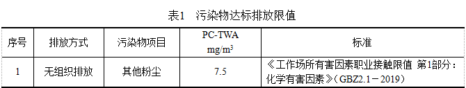 砂帶機(jī)產(chǎn)生的粉塵經(jīng)處理后達(dá)到《大氣污染物排放標(biāo)準(zhǔn)》(GB16297-1996)表2二級(jí)標(biāo)準(zhǔn)要求,即顆粒物排放濃度≤120mg/m3,尾氣接至窗戶外,同時(shí)增加百葉窗裝飾。同時(shí),車間內(nèi)無組織排放粉塵能符合《工作場所有害因素職業(yè)接觸限值 第1部分:化學(xué)有害因素》(GBZ2.1-2019)相應(yīng)標(biāo)準(zhǔn)要求,具體見下表1。