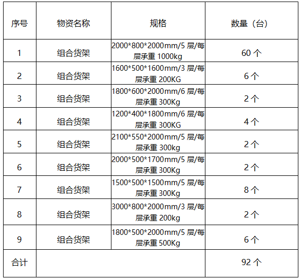 (三)項目內容:福建龍溪軸承(集團)股份有限公司計劃采購組合貨架92個。