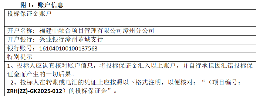 投標文件應于2025年8月28日9:00時整(北京時間)之前由法定代表人或授權委托人提交至開標現場:漳州市薌城區延安北路49號吉龍大廈6樓(隨行易交易(漳州)公共資源交易平臺),逾期送達的或不符合規定的投標文件將被拒絕接收。