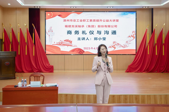 為進(jìn)一步提升職能部門技術(shù)管理人員綜合職業(yè)能力,塑造龍軸集團(tuán)良好形象,在市總工會(huì)的大力支持下,公司于3、4月開展2023年度職工素質(zhì)提升公益大講堂暨政務(wù)、商務(wù)禮儀知識(shí)專題培訓(xùn),邀請(qǐng)國際認(rèn)證形象顧問、國家高級(jí)政務(wù)禮儀指導(dǎo)師、國際注冊(cè)高級(jí)禮儀培訓(xùn)師陳燕和漳州城市職業(yè)學(xué)院副教授、國家認(rèn)證一級(jí)形象設(shè)計(jì)師鄭小瑩分別進(jìn)行政務(wù)禮儀和商務(wù)禮儀培訓(xùn)。公司領(lǐng)導(dǎo)及相關(guān)職能部門人員參加。
