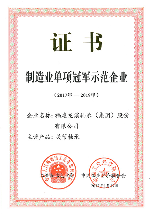 位于漳州市的福建龍溪軸承(集團)股份有限公司是生產經營關節軸承、圓錐滾子軸承、滾動功能部件及高端機械零部件的現代化國有控股上市集團公司,是中國機械工業核心競爭力100強企業,國家火炬計劃重點高新技術企業,國家創新型試點企業及全國軸承行業唯一一家制造業單項冠軍示范企業、全國工業品牌培育示范企業,是我國關節軸承行業領導者、全球關節軸承三大供應商之一。