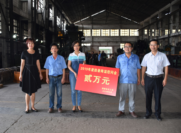 2019年8月14日下午,福建省總工會(huì)副巡視員劉冰新及漳州市總工會(huì)副主席陳美燕率防暑降溫慰問(wèn)團(tuán)一行蒞臨公司藍(lán)田一廠區(qū)生產(chǎn)現(xiàn)場(chǎng),看望慰問(wèn)一線員工。公司黨委書記、董事長(zhǎng)曾凡沛,黨委副書記、工會(huì)主席康安偉接待了慰問(wèn)團(tuán)一行。