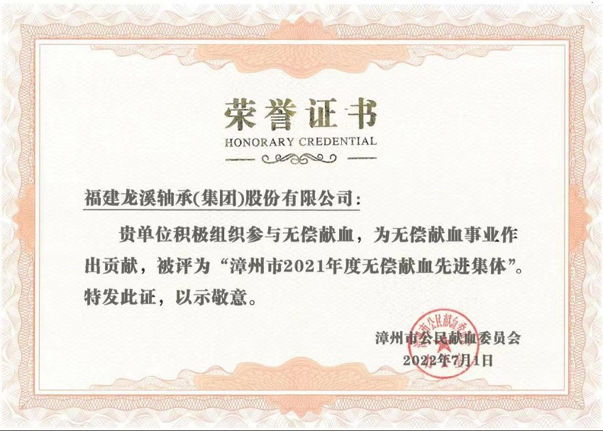 近日,漳州市公民獻(xiàn)血委員會(huì)辦公室授予龍軸集團(tuán)“漳州市2021年度無償獻(xiàn)血先進(jìn)集體”稱號(hào),同時(shí)授予高鄭峻“漳州市2021年度無償獻(xiàn)血個(gè)人促進(jìn)獎(jiǎng)”稱號(hào)。
