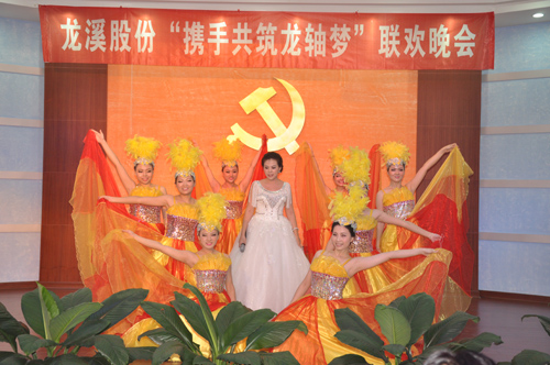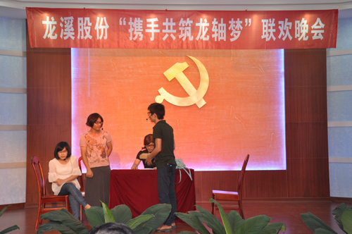2013年9月30日晚,為慶祝建國64周年,公司黨委、工會(huì)、共青團(tuán)在俱樂部一樓舉行“攜手共筑‘龍軸夢’”聯(lián)歡晚會(huì)。
