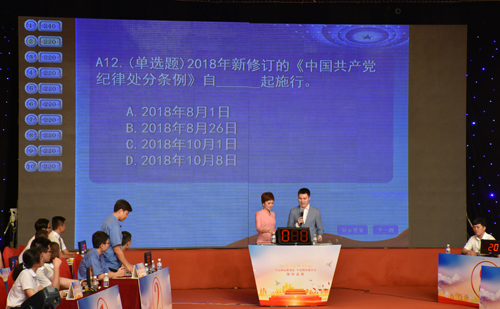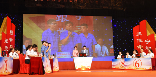 為進(jìn)一步深入學(xué)習(xí)習(xí)近平新時(shí)代中國(guó)特色社會(huì)主義思想和黨的十九大精神,響應(yīng)黨中央開展“不忘初心、牢記使命”主題教育要求,2019年6月26日下午,漳州市委組織部、漳州市國(guó)資委在漳州電視臺(tái)聯(lián)合舉辦“我和我的祖國(guó)——不忘初心跟黨走、牢記使命強(qiáng)學(xué)習(xí)”知識(shí)競(jìng)賽。公司黨委選派紀(jì)藝勇、張?jiān)床拧⒈R琦、范二金、陳智明等五人組成代表隊(duì)參賽,公司黨委書記、董事長(zhǎng)曾凡沛,黨委委員、副總經(jīng)理康安偉和來自各黨總支、黨支部的32名觀眾到場(chǎng)觀看比賽。