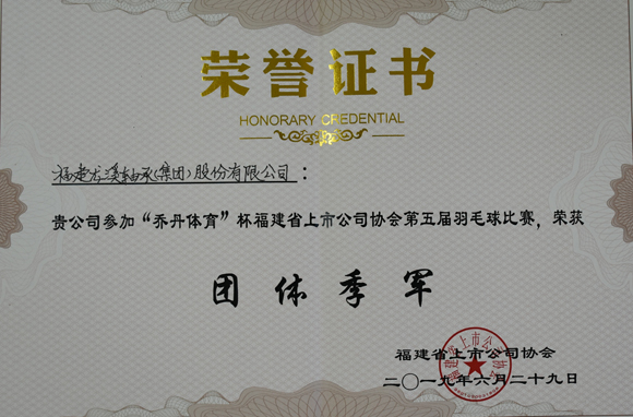 ????根據(jù)福建省上市公司協(xié)會(huì)《關(guān)于舉辦福建省上市公司協(xié)會(huì)“喬丹體育”杯第五屆羽毛球比賽的通知》,公司組隊(duì)參加了6月28-29日在福州舉辦的福建省上市公司協(xié)會(huì)“喬丹體育”杯第五屆羽毛球比賽,共有16支上市公司隊(duì)伍參加。