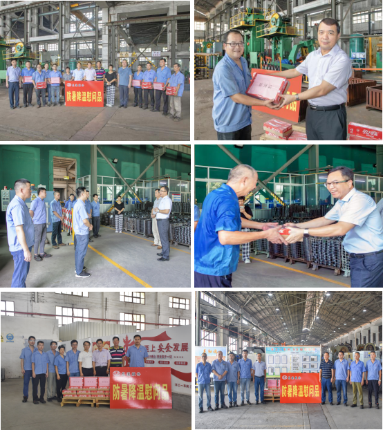 2022年7月27日,公司黨委書記、董事長陳晉輝帶隊(duì)深入鍛工車間、車工一車間、車工二車間、熱處理車間等生產(chǎn)一線開展“情系員工送清涼”活動(dòng),親切慰問戰(zhàn)高溫、斗酷暑、保高產(chǎn)的廣大員工,為廣大員工送上清涼防暑用品。公司黨委副書記、總經(jīng)理陳志雄,黨委委員、常務(wù)副總經(jīng)理鄭長虹,黨委副書記劉明福,紀(jì)委書記王志劼,副總經(jīng)理張逸青、林通靈,總工程師林振元等一同參加活動(dòng)。