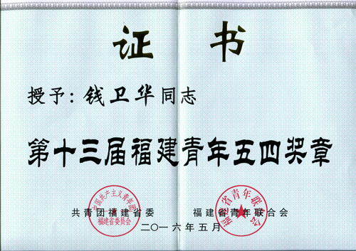 據(jù)悉,“福建青年五四獎?wù)隆笔枪睬鄨F福建省委、福建省青年聯(lián)合會授予福建省青年集體和個人的最高榮譽,其評選旨在集中展示廣大青年在推動福建科學(xué)發(fā)展跨越發(fā)展中的積極作為,進一步在廣大青年中形成崇尚先進、學(xué)習(xí)先進、爭做優(yōu)秀人才的風(fēng)氣。