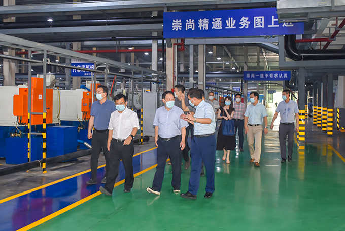 7月8日下午,市政協主席、“一藥一智”產業園指揮部指揮長吳文團帶隊到公司實地調研,市政府一級巡視員、“一藥一智”產業園指揮部副指揮長張翼騰等相關負責人參加調研活動。調研組一行在公司黨委書記、董事長陳晉輝,黨委副書記、總經理陳志雄,黨委委員、常務副總經理鄭長虹,總工程師林振元,總經理助理黃金勛的陪同下參觀公司關節軸承生產基地并進行座談。