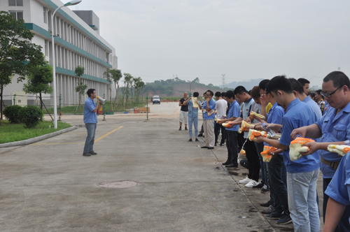 ????消防安全知識培訓結束后,參加培訓的人員一起乘坐公司大巴車到華安廠區參加“滅火、應急疏散預案”演練,共有136人參加了應急演練。此次應急疏散演練模擬的是華安廠區3#廠房員工在工作時間突發火災事故,旨在提高公司廣大員工的火災逃生及滅火能力,增強消防意識,同時也為了提高企業的火災應急救援能力,驗證公司《滅火、應急疏散預案》的實際應急效果。