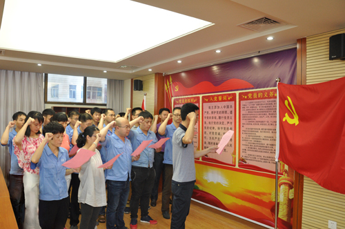 ????2017年7月10日下午,按公司黨委黨建工作計劃要求,公司黨委在黨團活動中心舉行新發展黨員入黨宣誓儀式。17位新黨員在黨旗的見證下,成為黨的一份子。