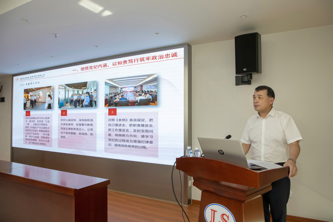陳晉輝從“領(lǐng)悟黨紀(jì)內(nèi)涵,以知責(zé)篤行筑牢政治忠誠(chéng)”“明晰紀(jì)律要求,以明責(zé)敢為落實(shí)主體責(zé)任”“涵養(yǎng)清正風(fēng)氣,以擔(dān)責(zé)奮進(jìn)推動(dòng)公司發(fā)展”等三方面進(jìn)行了深入闡述。他指出,黨的紀(jì)律是黨的各級(jí)組織和全體黨員必須遵守的行為規(guī)則,全面深入學(xué)習(xí)黨的紀(jì)律是每一名黨員和領(lǐng)導(dǎo)干部必須完成的政治任務(wù)。公司黨員干部要堅(jiān)持“學(xué)”在先、“悟”在深、“踐”在實(shí),真正領(lǐng)會(huì)黨的紀(jì)律的實(shí)質(zhì)和內(nèi)在要求,進(jìn)一步強(qiáng)化紀(jì)律意識(shí)、加強(qiáng)自我約束、提高免疫能力,增強(qiáng)政治定力、紀(jì)律定力、道德定力、抵腐定力。