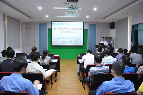 2014年4月27日-5月4日,公司共分五場在二樓會議室(四樓會議室)進行部分管理崗位公開競聘演講答辯。此次競聘包括了車間主任、車間副主任、車間調(diào)度、設(shè)備動力部部長、質(zhì)量管理部部長、國內(nèi)市場部副部長(主持)、科技管理部部長(或主持)、科技管理部副部長、安全與環(huán)境管理部部長(或主持)、黨支部副書記(兼副主任)、團委副書記等11個崗位,共有67名競聘者參加了競聘演講答辯,是公司歷年來競聘崗位數(shù)量、參加競聘人數(shù)最多的一次。