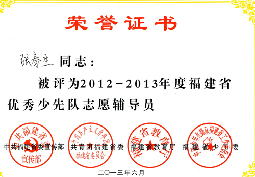 福建省優秀少先隊志愿輔導員主要事跡